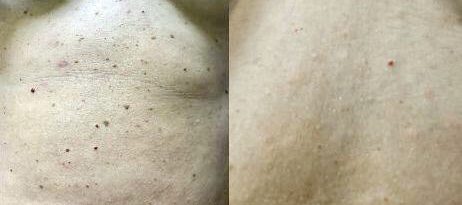 A seborrheic Keratosis (SK) is a common, noncancerous skin lesion in older adults. They can vary in color from light tan to dark brown or black. They are usually round or oval-shaped with an elevated, rough surface. SKs range in size from very small to more than one inch in diameter and can develop on face, chest, back, shoulders. SKs appearance can be irritating, bothersome, and embarrassing for some people.